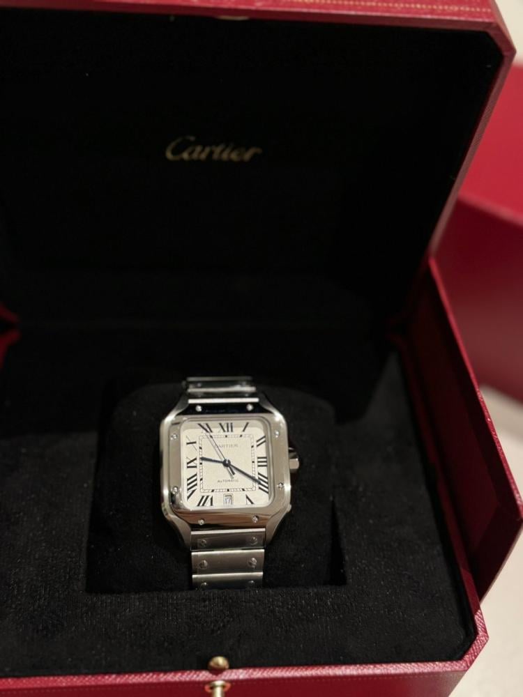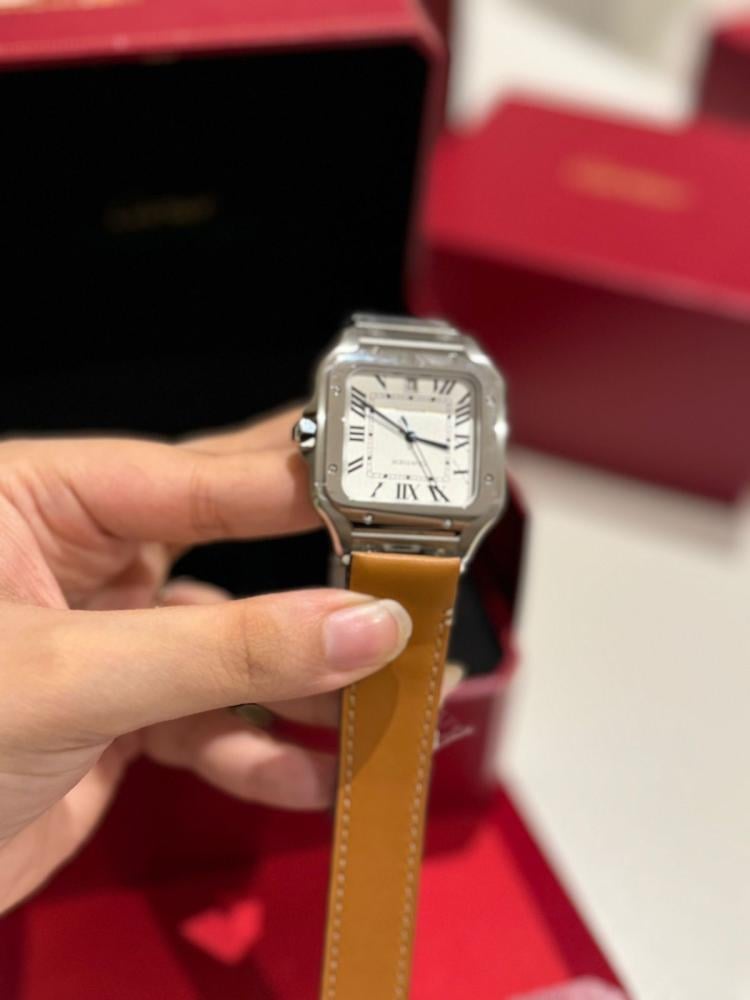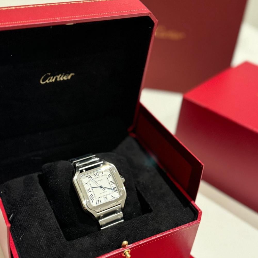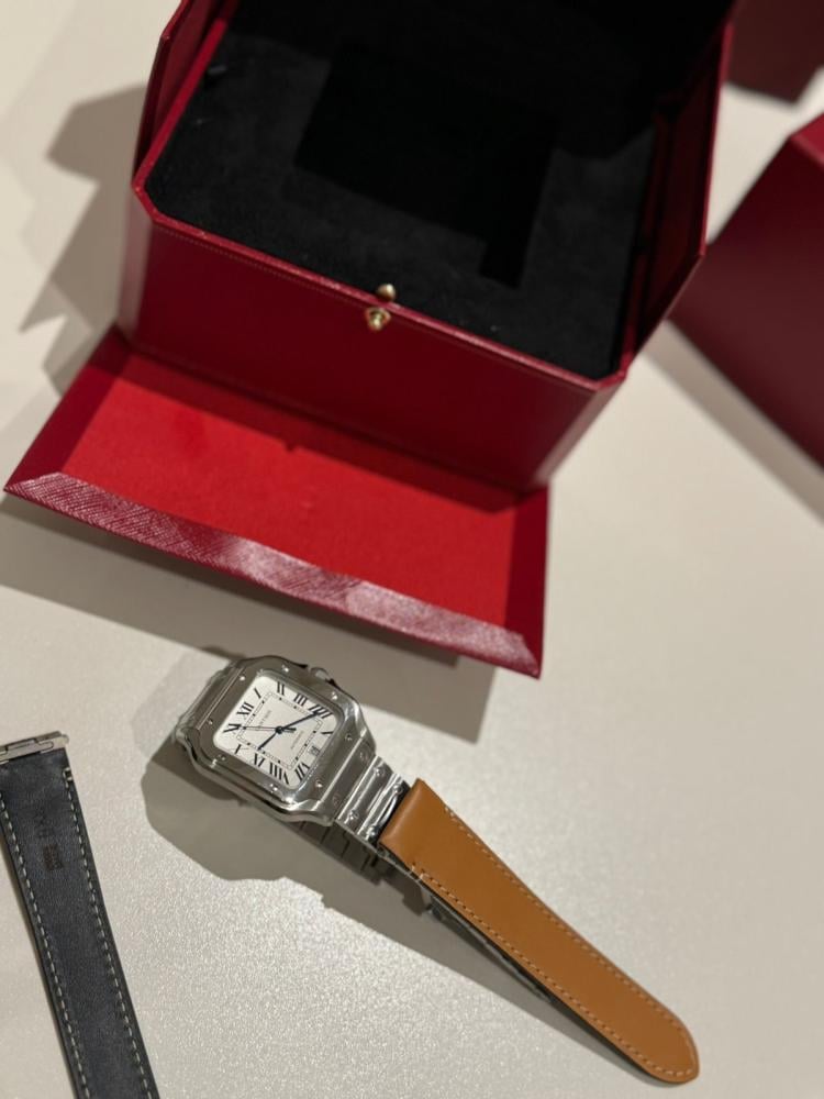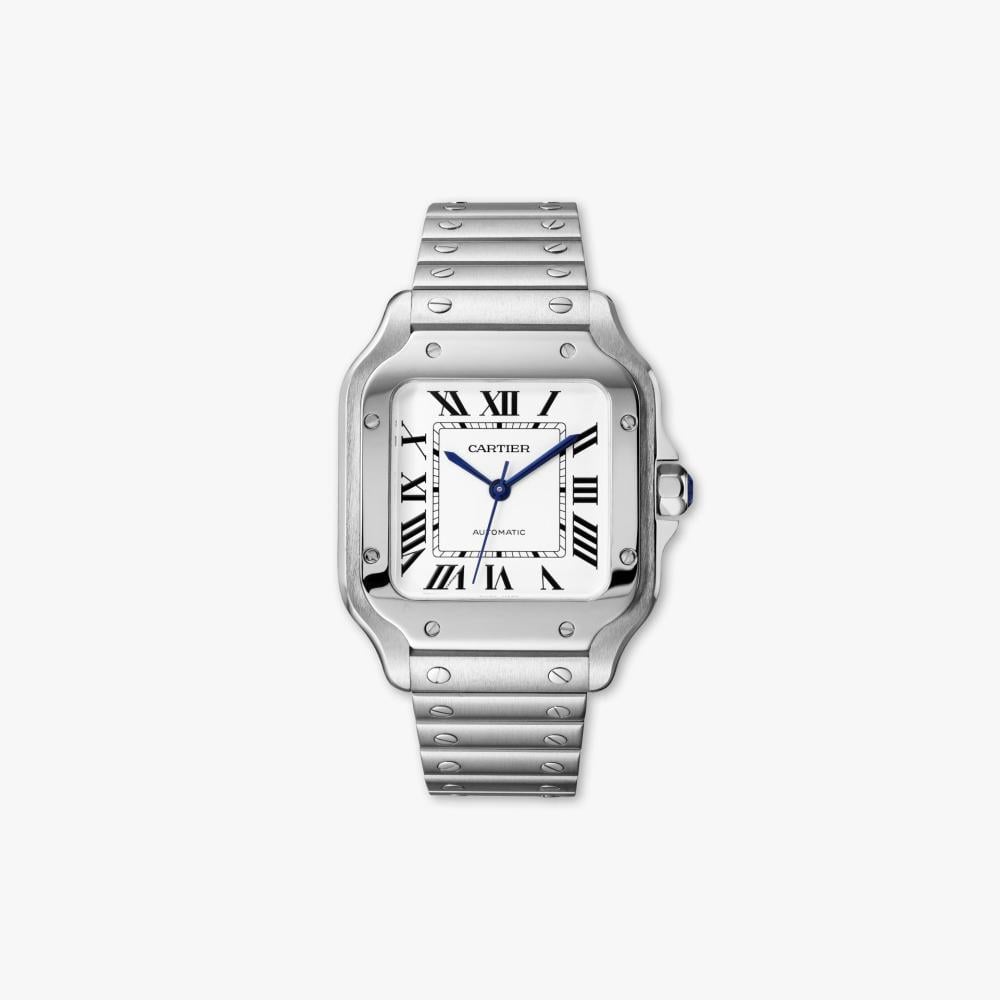 ساعة سانتوس الحجم الكبير ستيل وميناء ابيض وسوار من الستيل قابل للتغيير الى جلد